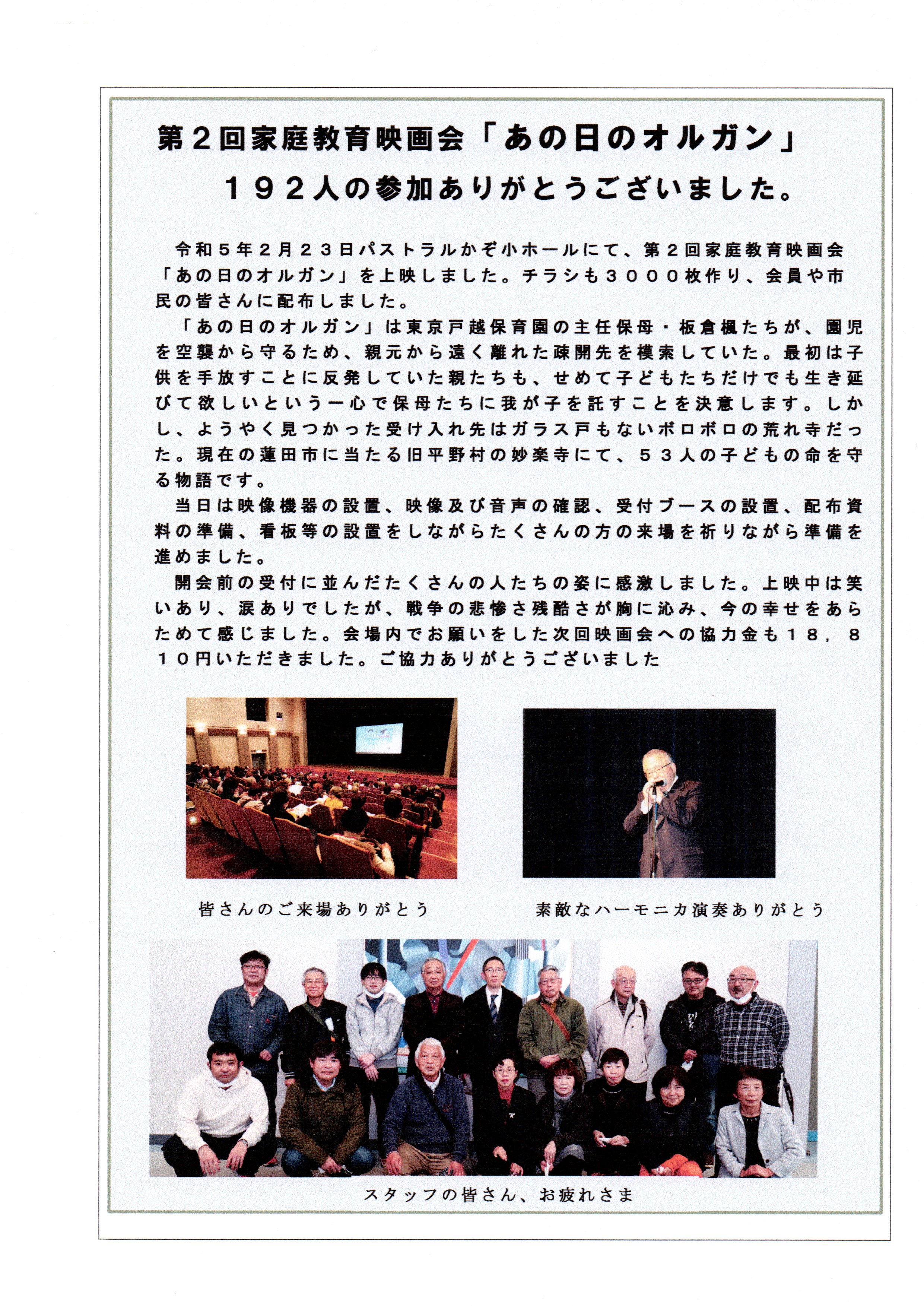第2回家庭教育映画会 『あの日のオルガン』
